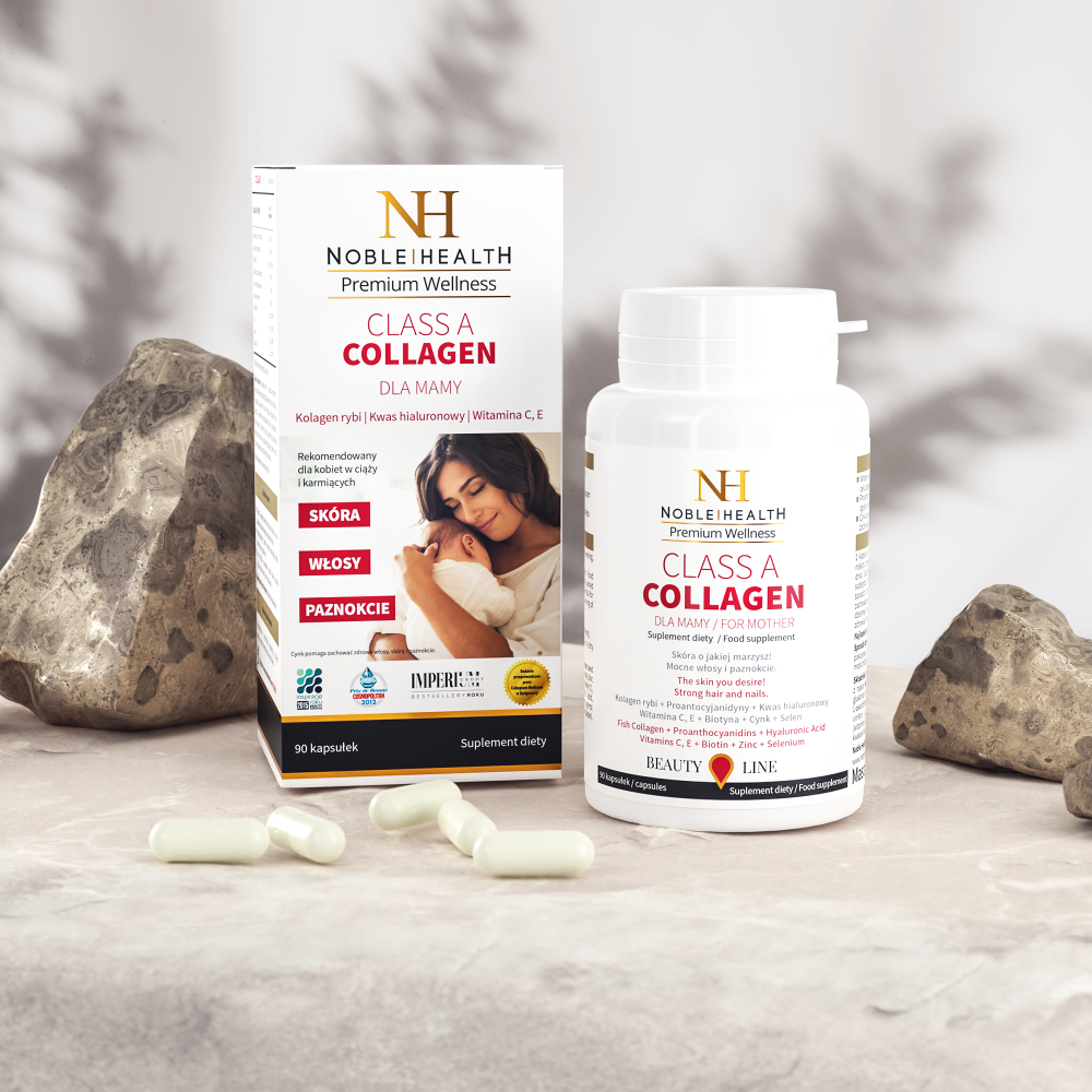 Class A Collagen For Mom ist ein Produkt für alle, die ihre Haut, Haare und Nägel pflegen möchten. Es wird besonders für schwangere und stillende Frauen empfohlen. Bedenken Sie jedoch, dass die Schwangerschaft eine besondere Zeit ist, und konsultieren Sie vor der Einnahme von Nahrungsergänzungsmitteln immer Ihren Arzt. Das Nahrungsergänzungsmittel Class A Collagen For Mom basiert auf Wirkstoffen, hauptsächlich Kollagen der Klasse A aus Meeresfischen, Hyaluronsäure und Traubenkernextrakt.